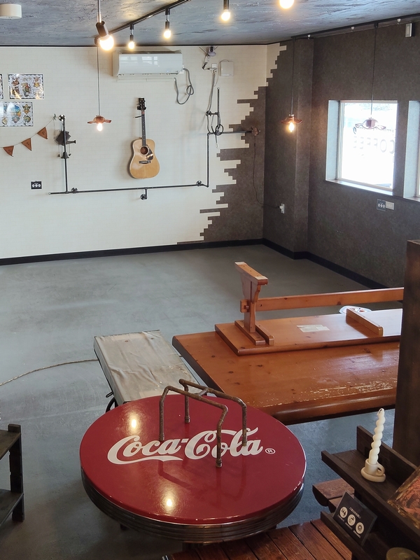 乾燥するまでの1時間ほど待つ間に 焙煎コーナーから飲食厨房 そしてカウンター内へと進め