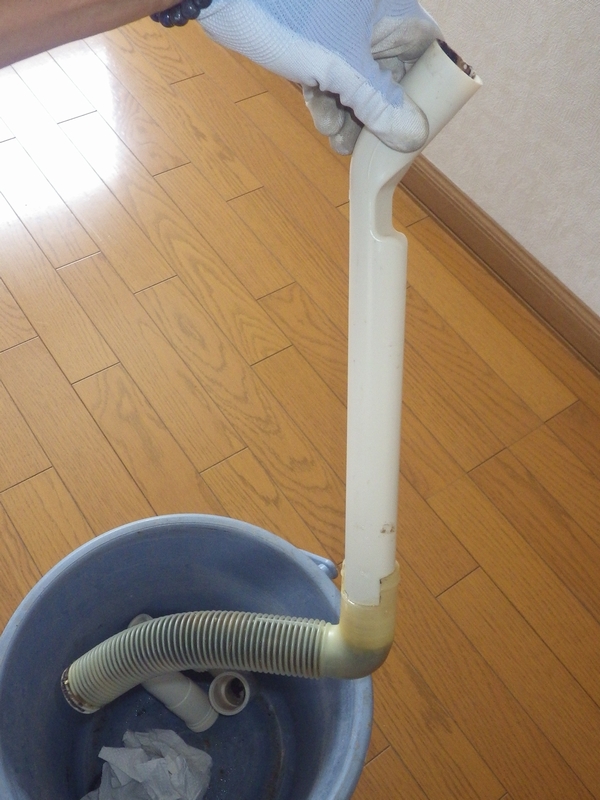 次にそのままの状態でバケツで排水を受けます 綺麗にスッキリ流れます