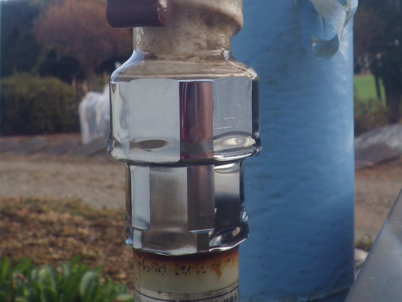 おそらく夏場の使用状態(通水)のままで 数日前にマイナスになった際に凍結 凍上でネジ部破損