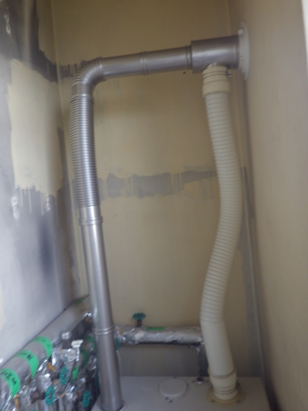 次に新しいボイラーを設置・給排気トップ・給排気管・温水往き戻り配管を接続