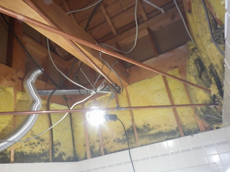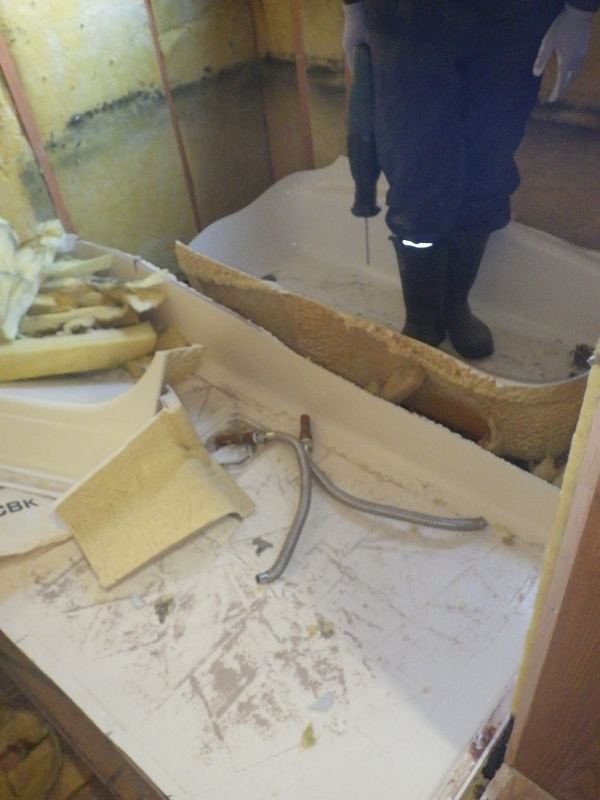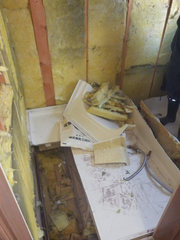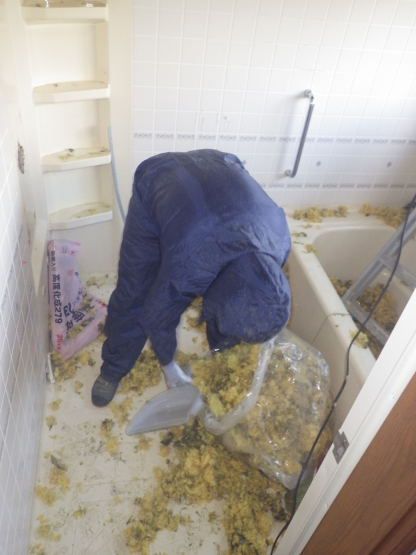 次に浴室 まずは天井の一部を解体して断熱材を撤去