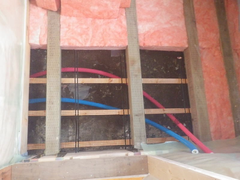 3日目 ユニットバスを組立てる前に 予め壁内に給水管・給湯管 浴室リモコン用のコードを隠ぺい