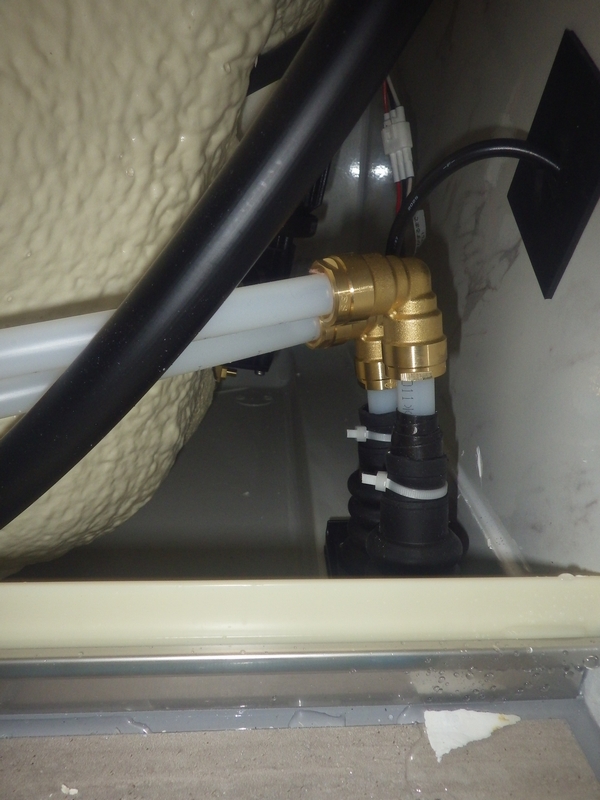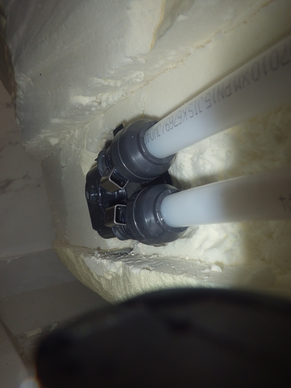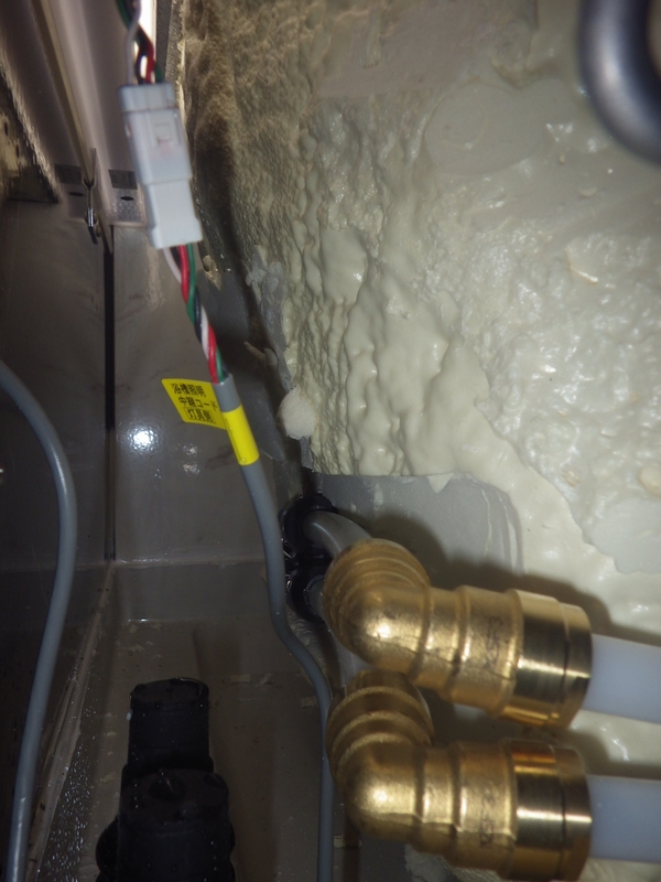 浴槽エプロン内の追焚循環金具取付と配管接続