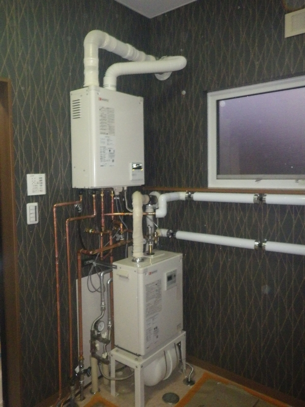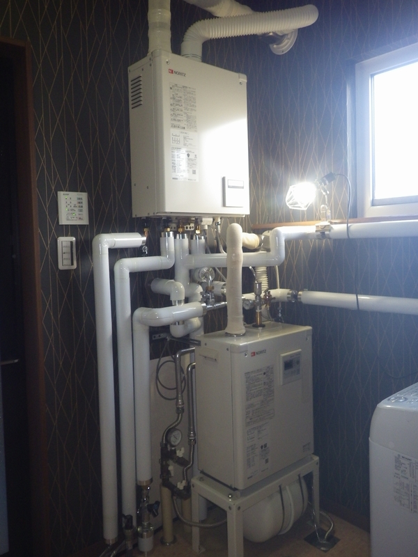 給湯機の取付と各系統の配管を接続