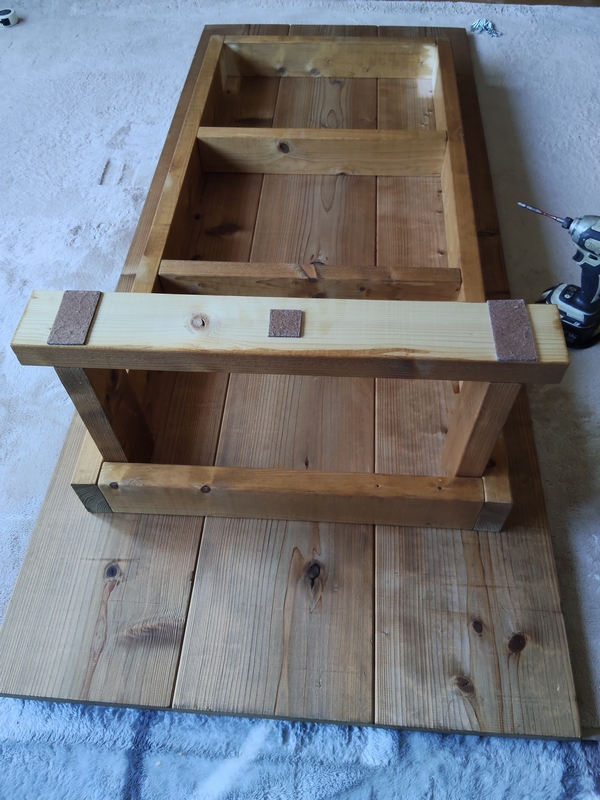 椅子の脚部はテーブルから取り外した2×4材を加工して補強