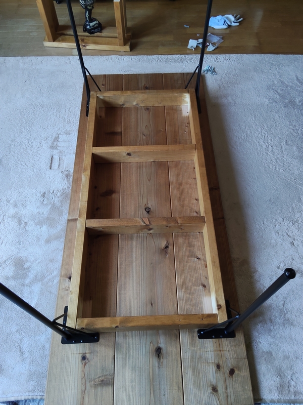 たくさん集まると座れきれず 不便なので 昨年末に テーブル&椅子の脚をカット